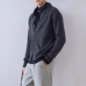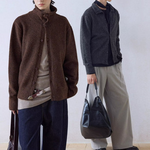 老钱风半高领毛衣开衫男款秋季美式慵懒高级感cleanfit针织衫外套