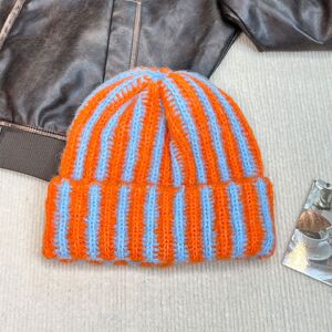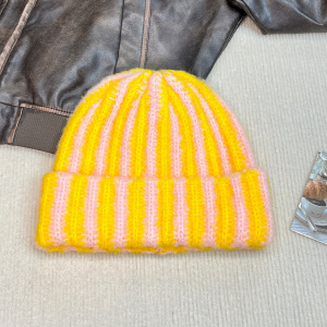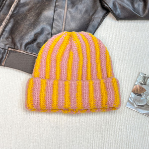 2025新款撞色条纹毛线帽女秋冬针织包头帽显脸小护耳保暖套头冷帽