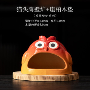 猫头鹰香薰壁炉创意陶瓷熏香秘鲁圣木鼠尾草雪松燃烧器氛围摆件