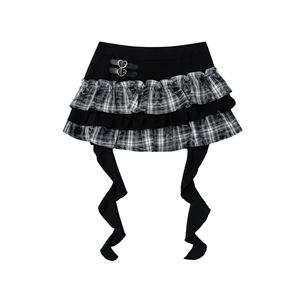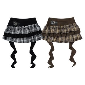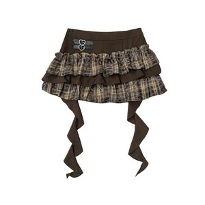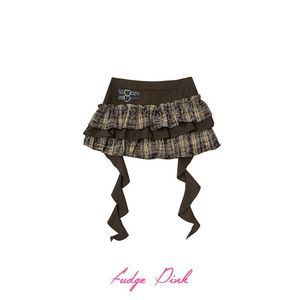 Fudge Pink 25秋季New甜美辣妹个性设计格纹拼接短裙