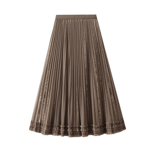 两穿网纱半身裙女2025秋冬新款松紧高腰中长款a字百褶裙子D8602