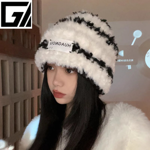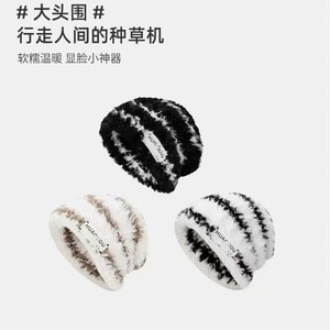 秋冬新款针织毛线毛绒帽女保暖帽子围巾百搭显脸小护耳帽厂家直销