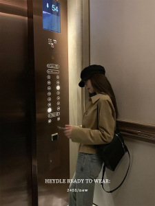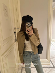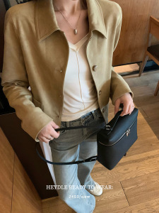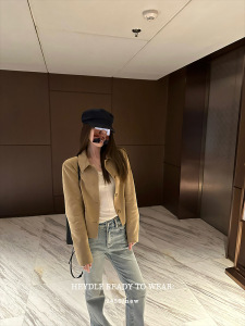 黑豆哼哼 醇厚美拉德*翻领麂皮外套女春秋短款复古卡其色夹克上衣