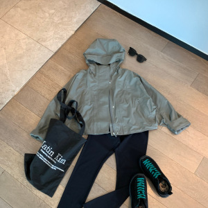 25秋季新款女士休闲短款小雨衣舒适透气连帽冲锋衣外套0915i1