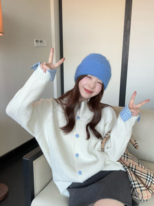 实拍~秋季新款慵懒风宽松显瘦复古翻领长袖针织毛衣休闲外套89147