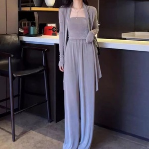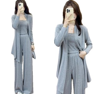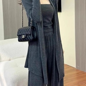 开衫外套背心阔腿裤休闲三件套女2025秋季新款显瘦慵懒风时尚套装