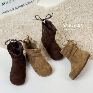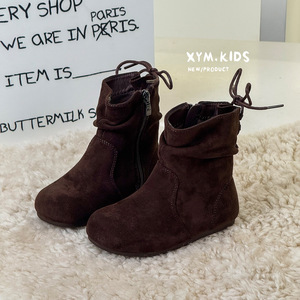 2025年秋季新款童鞋韩版儿童靴子时尚复古绒面软底女童堆堆靴