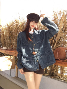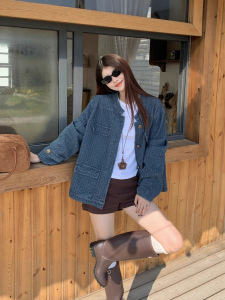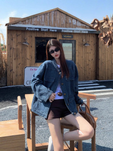 大码胖mm甜酷风牛仔外套秋季新款复古宽松显瘦设计感夹克上衣