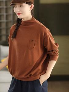秋季新款 上衣半高领长袖套头衫显瘦休闲纯色T恤卫衣3270