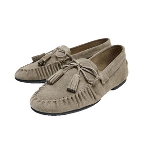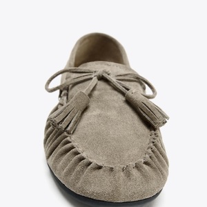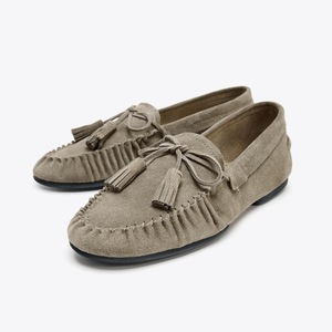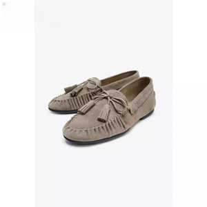 新品时尚女鞋反绒皮蝴蝶结流苏防滑软底通勤单鞋苏穗船鞋乐福鞋