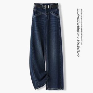 2025秋季新款蓝色高腰阔腿牛仔裤女美式直筒宽松显瘦显高拖地裤子