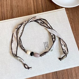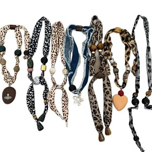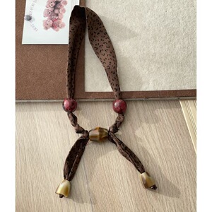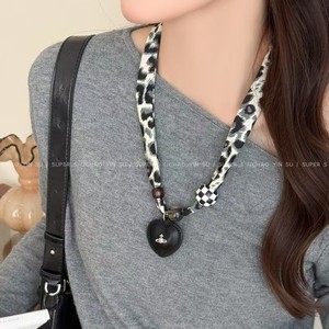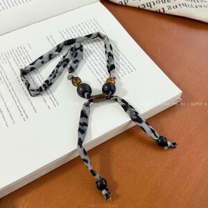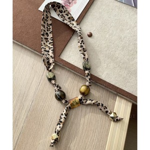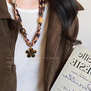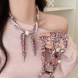 美拉德豹纹布艺花丝巾项链女新款独特设计感可抽拉气质围脖毛衣链