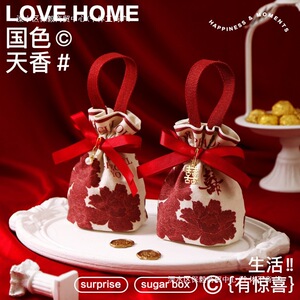 2025新款结婚喜糖袋子婚礼帆布糖袋喜糖盒子手提包邮