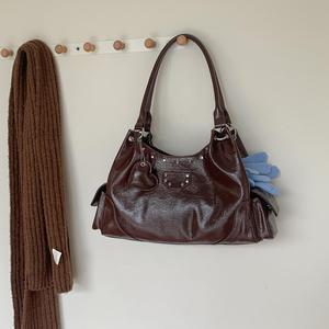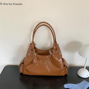 韩版复古上班通勤包跨境2025新款手提包大容量铆钉爱心时尚单肩包