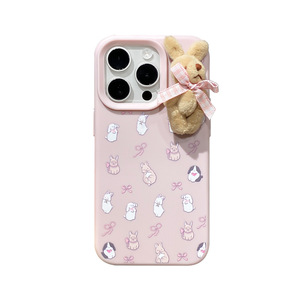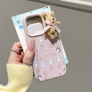 适用iPhone17Promax手机壳苹果16/15粉色兔子硅胶防摔保护套14/13