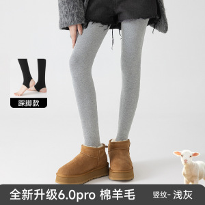 踩脚【羊毛款】平腰竖条棉裤220G薄绒