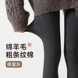 连脚【羊毛款】平腰竖条棉裤220G薄绒