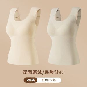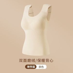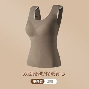 秋冬加绒保暖背心女士大码修身高弹塑身无痕带胸垫德绒垫肩美背女