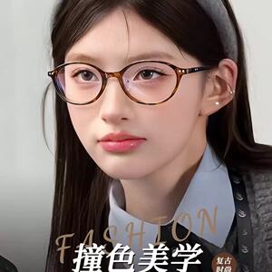 miu系书呆子玳瑁眼镜近视女可配度数超轻豹纹素颜小椭圆眼睛框架