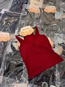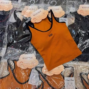 妃子纪722保暖磨毛挂脖工字背心女法式U领刺绣字母款纯欲风带胸垫