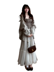 巨好看白色连衣裙子女早秋季2025新款韩系氛围感穿搭一整套装长裙