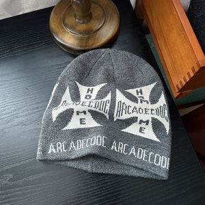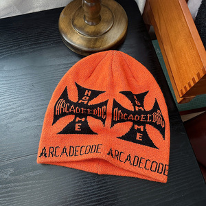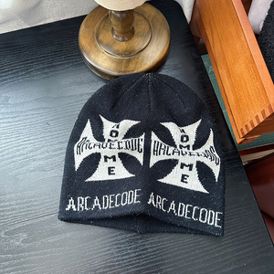 西海岸风格2025新款十字提花针织冷帽嘻哈户外街舞潮牌护耳帽子