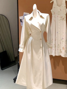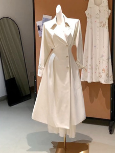 高级感优雅大方轻职场穿搭白色风衣女秋季时尚气质中长款大衣外套