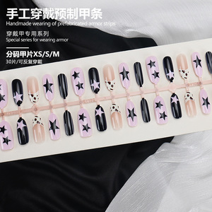 30片分码手工穿戴甲粉黑撞色星星豹纹美甲甲片甜酷风显白指甲贴片