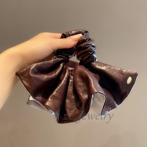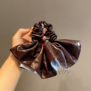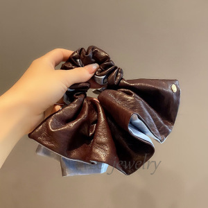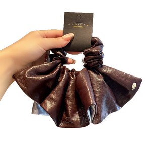 安可拉红色皮质撞色气质裙摆肠圈女高级感轻奢后脑勺慵懒扎头绳