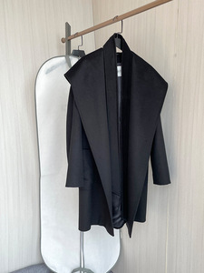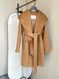 M家经典款Rialto连帽黑色水波纹羊绒骆驼绒中长款大衣101606190