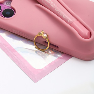 万兴甜美粉色锆石爱心芒星戒指个性小众高级感指环女送女友礼物
