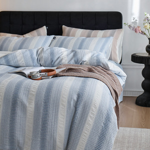 渐变立体提花纹理华夫格四件套感蓝色简约纯棉小众床品套件