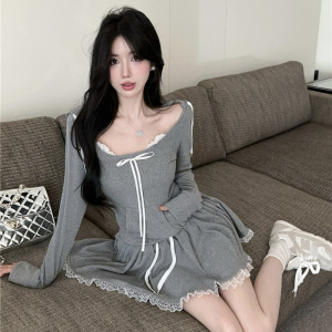 甜辣风穿搭洋气一整套装女入秋修身短款拼接上衣撞色短裙潮两件套
