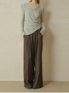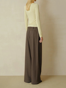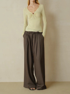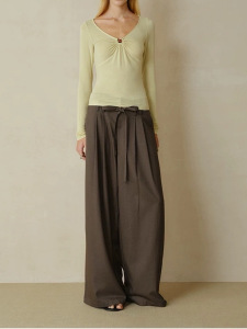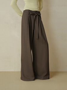 someone sometimes天丝羊毛无腰头双裤耳腰带双褶阔腿斜纹西裤