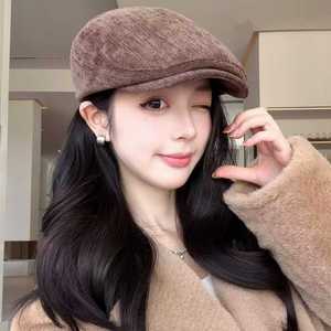 韩系简约百搭前进帽子女秋冬显脸小鸭舌报童帽复古时尚反戴贝雷帽