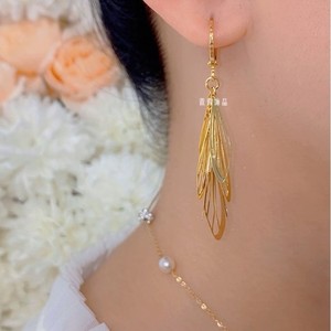 2025年新款爆款金色翅膀流苏耳环时尚气质耳扣长款显脸小耳坠耳饰