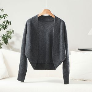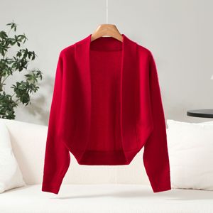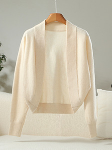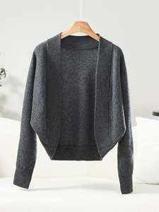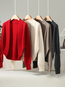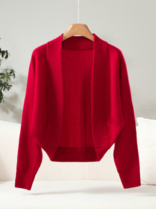 简约纯色100羊毛披肩外套女秋冬新款慵懒宽松蝙蝠袖无扣毛衣开衫