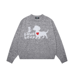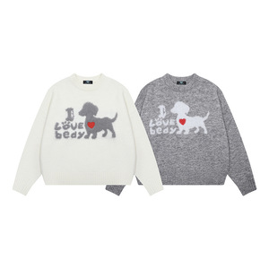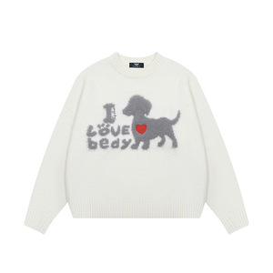 复古小狗爱心提花毛衣女2025秋冬新款慵懒风休闲针织衫上衣潮