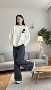 小蛮腰早秋新款羊绒休闲裤感气高腰显瘦韩系阔腿裤加绒休闲香蕉裤
