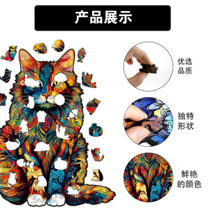 跨境木质猫拼图玩具不规则异形拼图存钱罐礼物装饰画