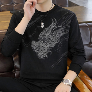 2025年男士秋季圆领骨头花卫衣男士时尚百搭卫衣打底衫男卫衣男