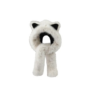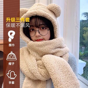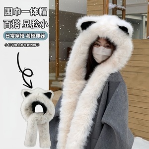 秋冬季围巾一体女加厚毛绒绒狐狸耳朵防寒保暖防风护颈显脸小帽子
