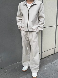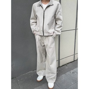 杏色美式格纹拼接哈灵顿夹克男秋季cleanfit短款立领正肩休闲外套