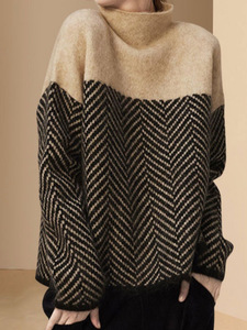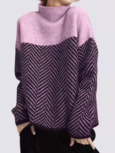 软糯针织衫女2025年秋冬季新款拼色女士毛衣加厚半高领打底衫上衣