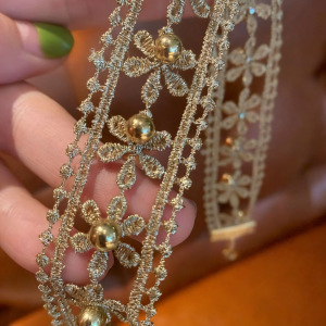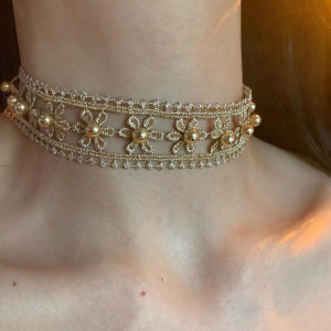 双边金线 镂空花朵钉珠choker项圈女布艺废土风锁骨链配饰2025潮
