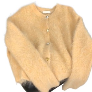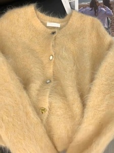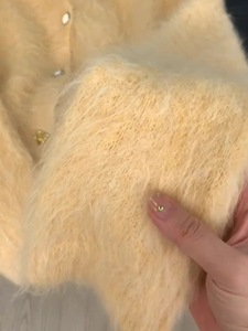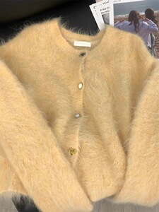 秋冬新款奶黄色软糯仿水貂绒毛衣女精致小众设计单排扣针织开衫