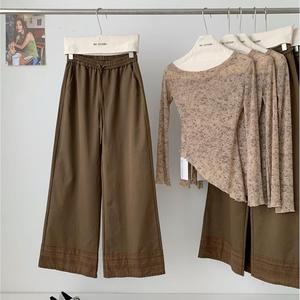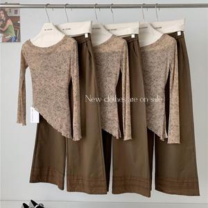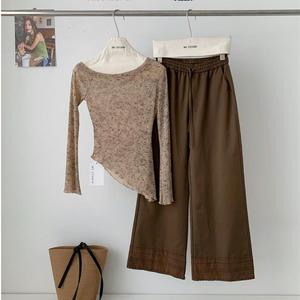 2025春秋季新款设计感露肩不规则长袖衬衣女宽松休闲裤长裤两件套