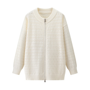 2025秋冬季新款复古格雷系白色高领毛衣女慵懒高级感针织开衫