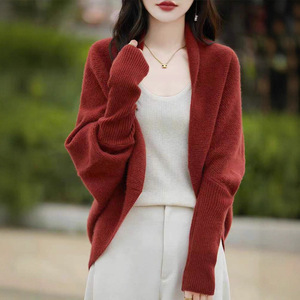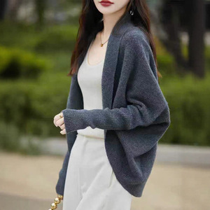 2025早秋季设计感新款针织衫开衫女宽松外搭蝙蝠袖斗篷毛衣披肩女