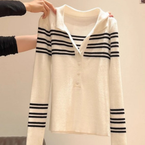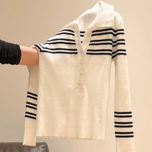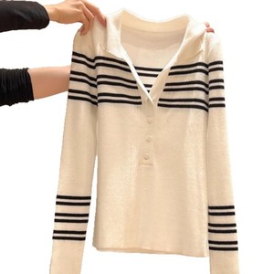 撞色条纹针织长袖打底衫内搭女2025秋冬新款半开领长袖毛衣